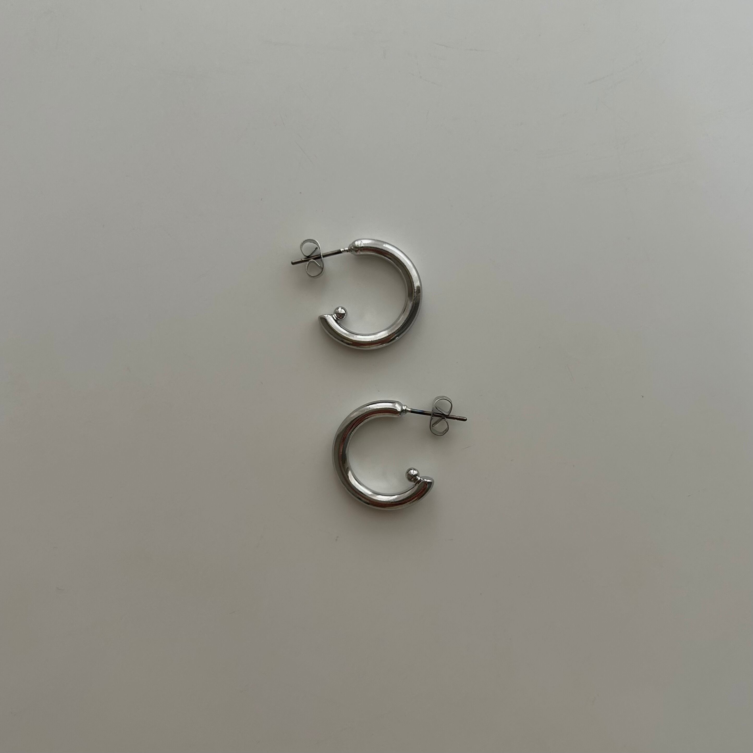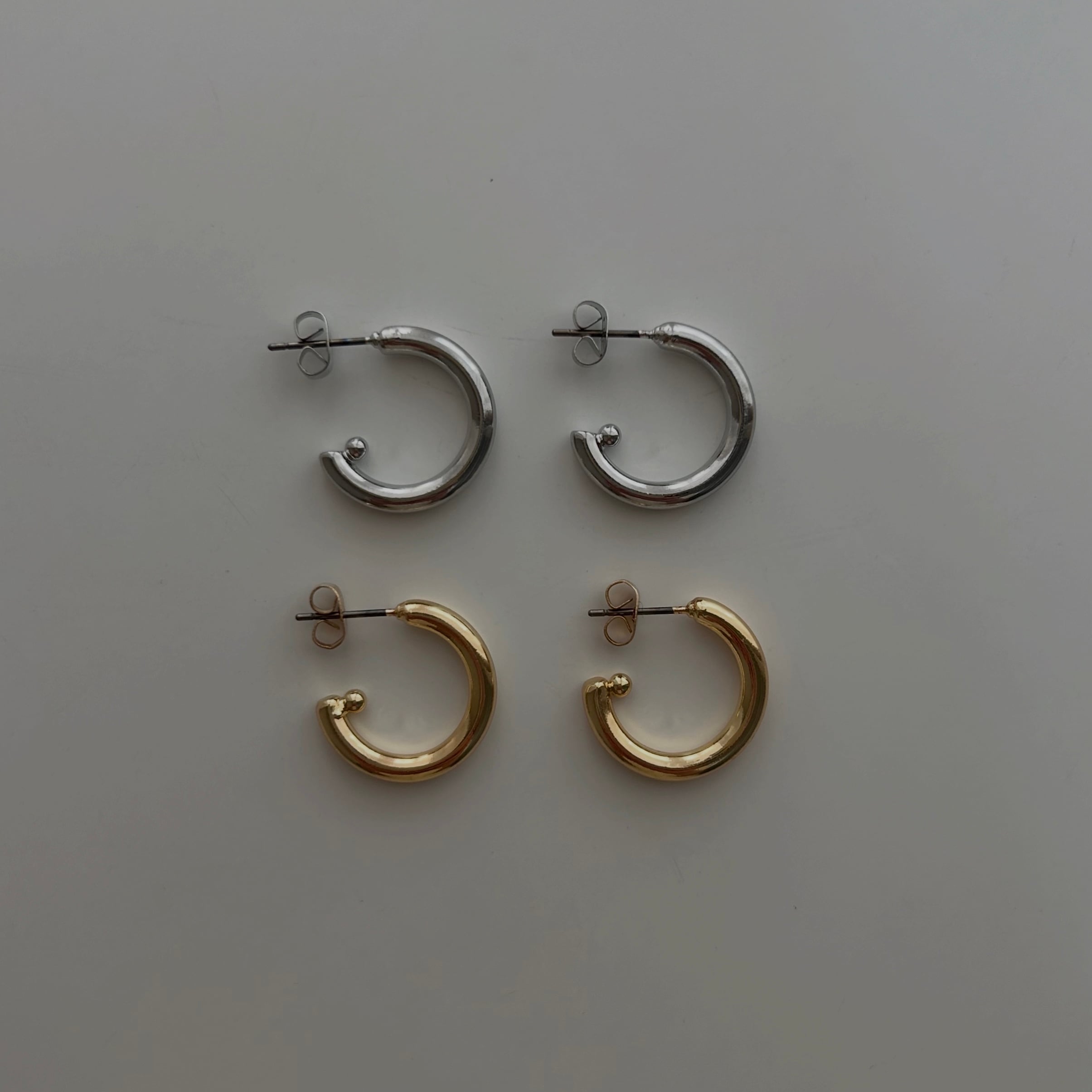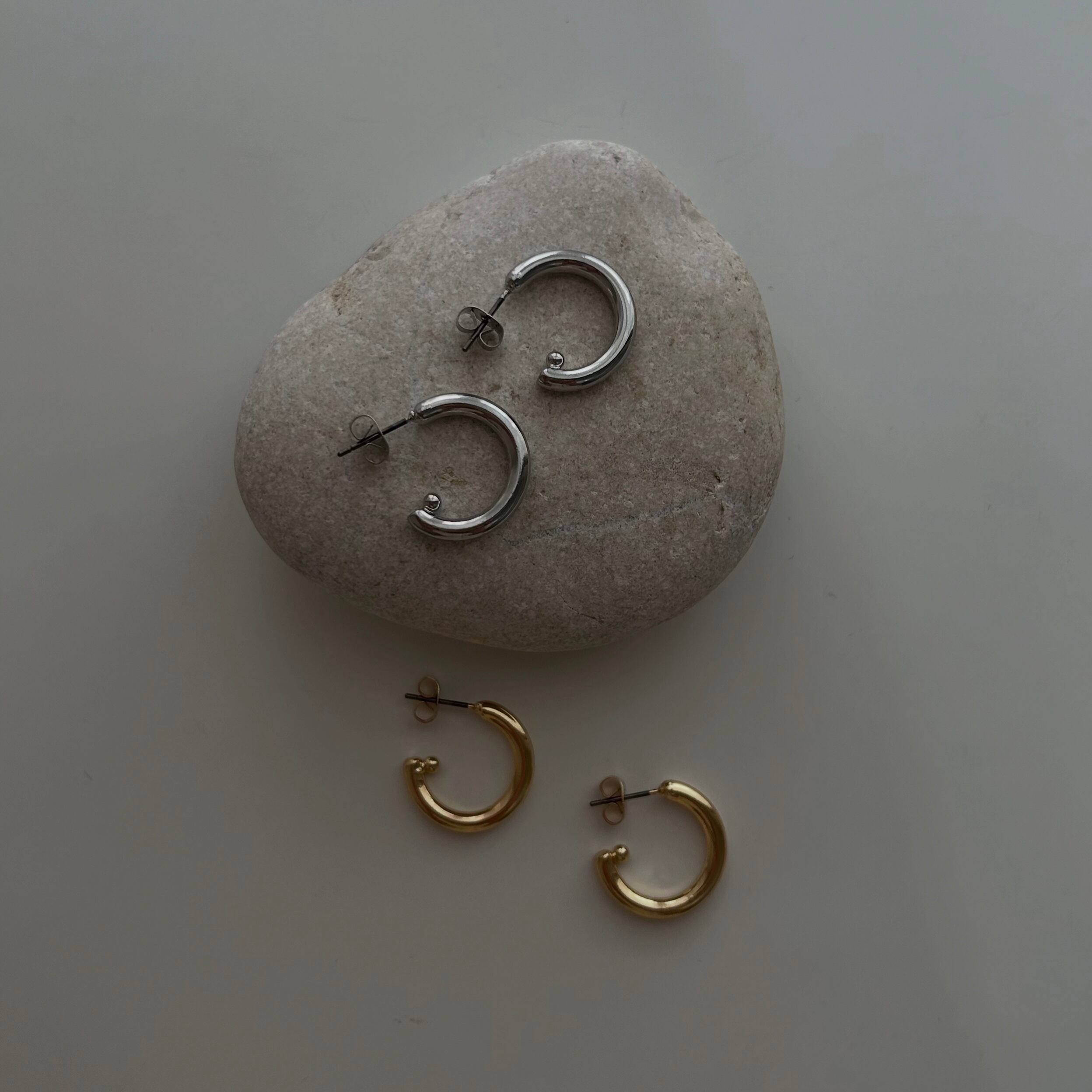 さりげなくぽつんと付いているお豆のようなドットがポイントのフープピアス